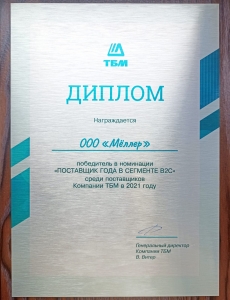 Выражаем нашу искреннюю благодарность и глубокую признательность Компании ТБМ за эту награду, за то, что отметили наши достижения и высоко оценили нашу работу в 2021 году.